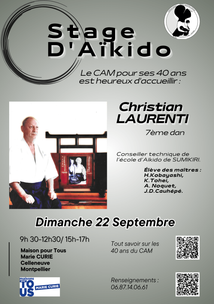 Un immense merci à chacun d’entre vous pour votre présence et votre participation à la célébration des 40 ans du Cercle d’Aïkido Montpelliérain (CAM). Ensemble, nous avons partagé des moments inoubliables qui ont non seulement renforcé nos liens, mais nous ont aussi permis de plonger encore plus profondément dans notre Art, d’en ressentir toute la richesse et de mieux comprendre sa singularité.